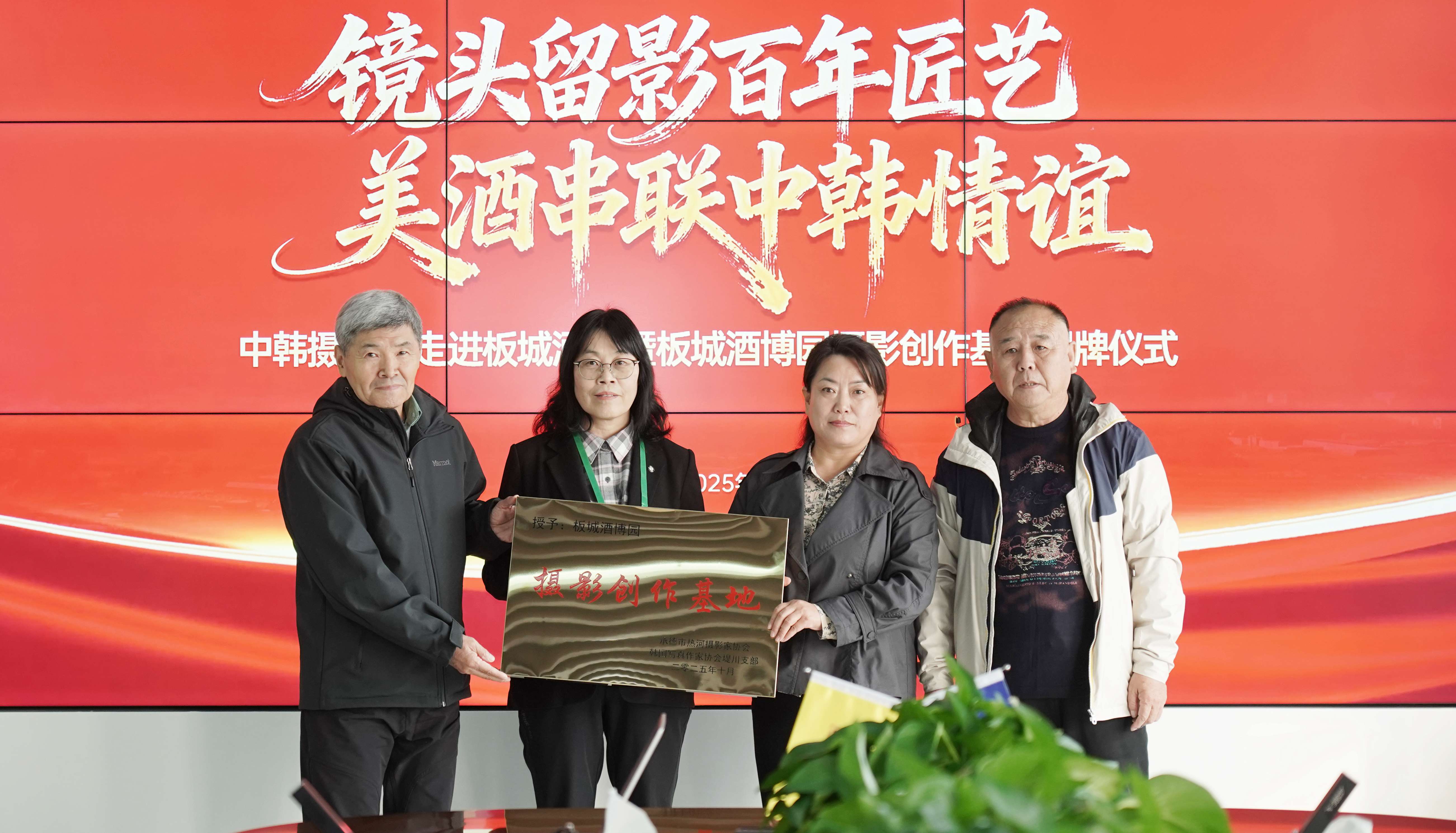 板城酒業(yè)行政總監(jiān)郝華杰講到:“中韓兩國(guó)地緣相近,人文交流源遠(yuǎn)流長(zhǎng)。攝影作為一門跨越語(yǔ)言障礙的藝術(shù),是連接心靈、增進(jìn)理解的橋梁。此次中韓攝影家交流活動(dòng),不僅是一次藝術(shù)的盛會(huì),更是一次友誼的深化。板城酒業(yè)被授予'板城酒博園攝影創(chuàng)作基地'的殊榮,我們倍感榮幸與自豪。這塊牌匾,是對(duì)板城酒業(yè)歷史底蘊(yùn)與文化價(jià)值的肯定。同時(shí),我們也借這塊牌匾發(fā)出一份鄭重的邀請(qǐng),邀請(qǐng)各位藝術(shù)家,將板城酒業(yè)當(dāng)作一個(gè)可以作品拍攝、自由探索的藝術(shù)創(chuàng)作基地。”