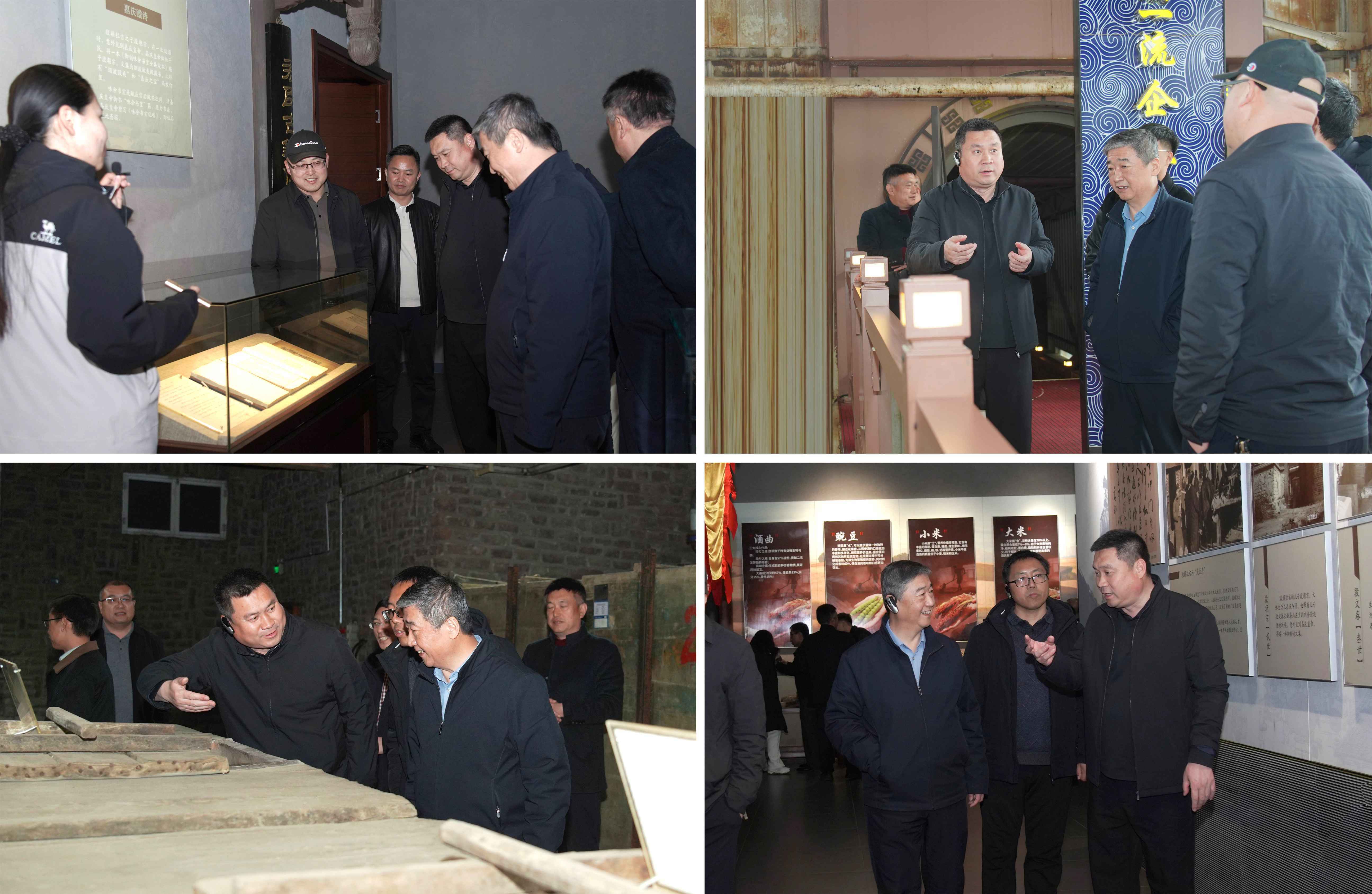 在賀延昭總經(jīng)理的陪同下,孫政書記一行實(shí)地走訪了釀酒車間、乾元酒窖、板城燒鍋酒博物館。
